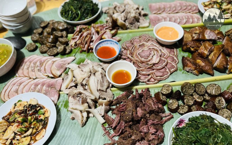 Đến với Pu Nhi Hill, ngoài ngắm cảnh và tận hưởng những khoảnh khắc thật đẹp, thật yên bình, du khách còn có cơ hội thưởng thức các món ngon đặc sản của núi rừng Tây Bắc. Có gì nhỉ? Nào là thịt lợn nước, cá nướng, cơm lam,… đều là các món nóng hổi, thích hợp ăn trong không khí mát lành của đất trời Bắc Yên.